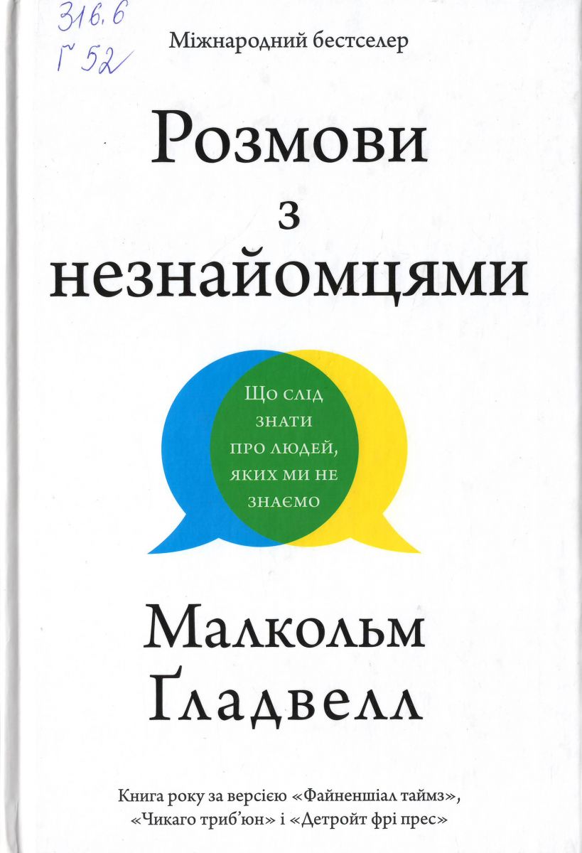 Ґладвелл, М. Розмови з незнайомцями : що слід знати про людей, яких ми не знаємо / М. Ґладвелл ; пер. з англ. Н. Ференс. - К. : КМ-БУКС, 2020. - 352 с. : іл.