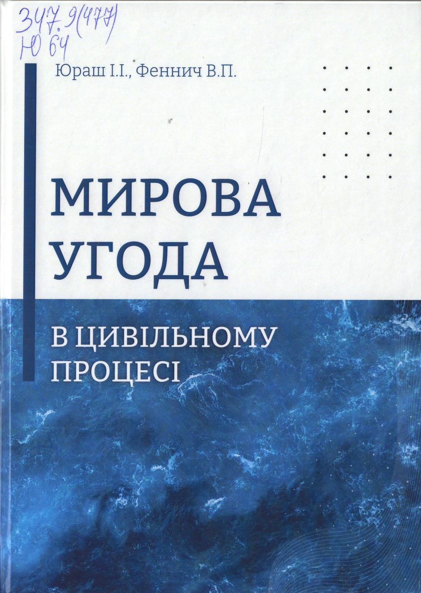 Юраш, Іван Іванович. Мирова угода в цивільному процесі : монографія / І. І. Юраш, В. П. Феннич. – Ужгород : РІК-У, 2025. – 276 с.