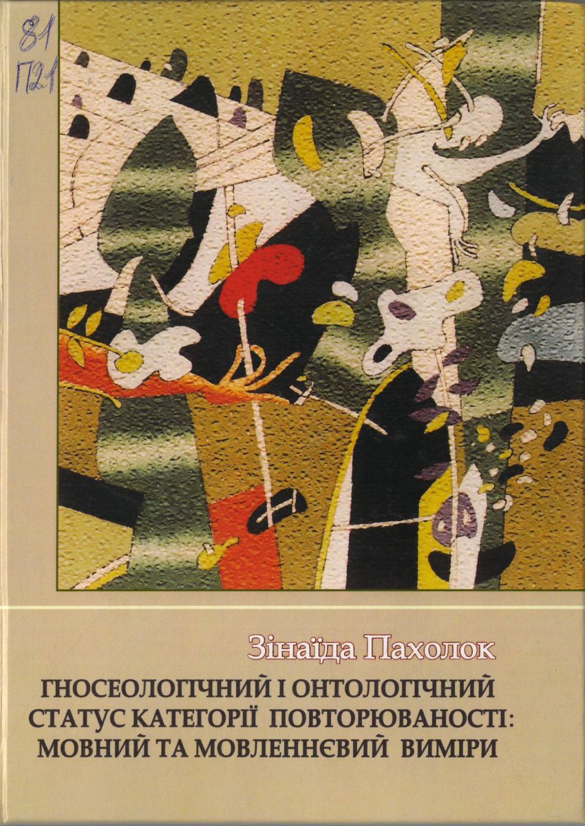 Пахолок, Зінаїда Олександрівна. Гносеологічний і онтологічний статус категорії повторюваності: мовний та мовленнєвий виміри : монографія / З. О. Пахолок ; М-во освіти і науки України, Східноєвроп. нац. ун-т ім. Л. Українки, Пед. ін-т. – Луцьк : Вежа-Друк, 2013. – 684 с. : іл, табл.