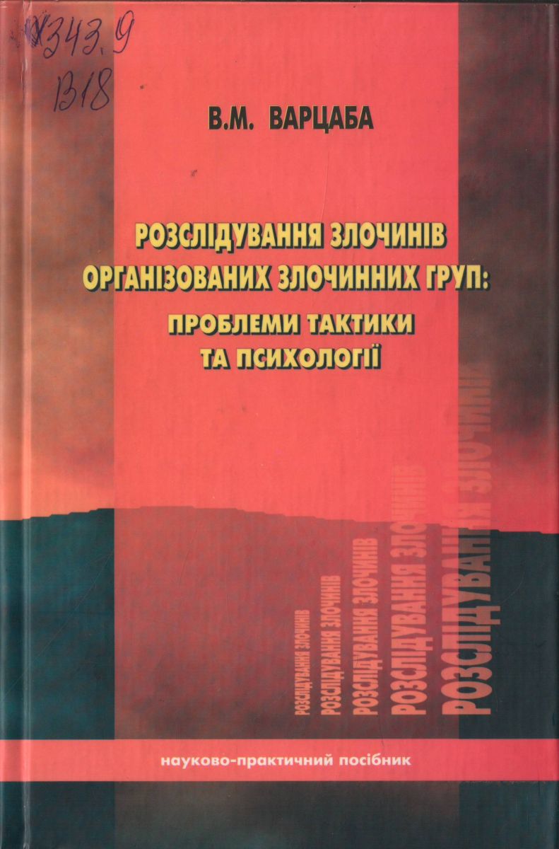 Варцаба, Василь Миколайович. Розслідування злочинів організованих злочинних груп: проблеми тактики та психології : наук.-практ. посіб. / В. М. Варцаба ; Нац. юрид. акад. України ім. Ярослава Мудрого, Закарпат. держ. ун-т. – Ужгород : Карпати, 2005. – 248 с.