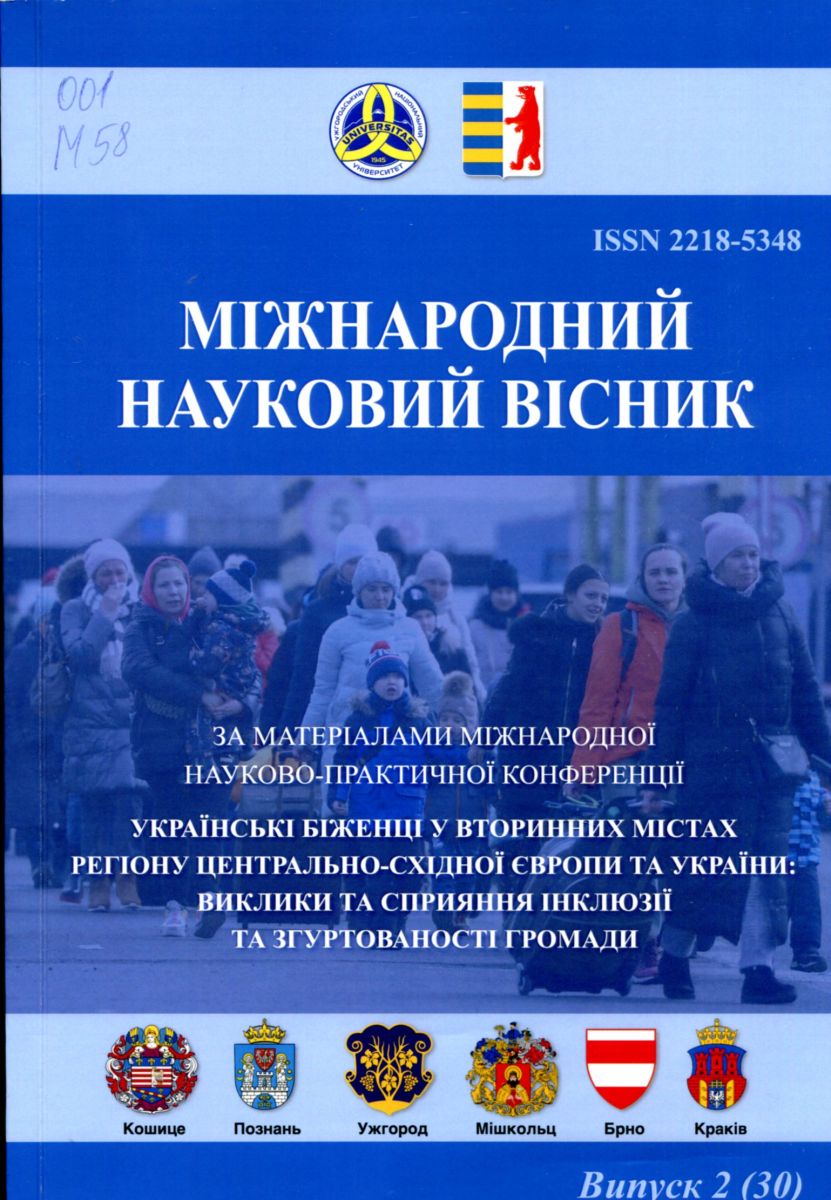 Вип. 2 (30) : Українські біженці у вторинних містах регіону Центрально-Східної Європи та України: виклики та сприяння інклюзії та згуртованості громади (м. Ужгород, 19 грудня 2024 р.) = Ukrainian refugees in secondary cities of Central and Eastern Europe and Ukraine: challenges and promotin наук.-праg inclusion and community cohesion (Uzhhorod, December 19, 2024) : за матеріалами Міжнар.кт. конф. / уклад. П. В. Токар. – 2024. – 128 с. : кольор. іл., табл. – Бібліогр. наприкінці ст.