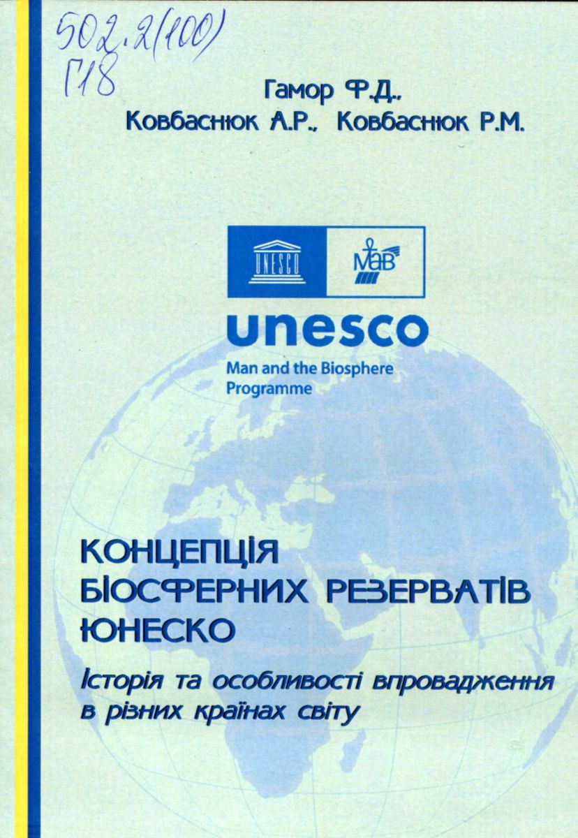 Гамор, Федір Дмитрович. Концепція біосферних резерватів ЮНЕСКО : історія та особливості впровадження в різних країнах світу / Ф. Д. Гамор, А. Р. Ковбаснюк, Р. М. Ковбаснюк ; М-во захисту довкілля та природ. ресурсів України, Карпат. біосфер. заповідник. – Львів : Простір-М, 2025. – 160 с. : кольор. іл. – Бібліогр.: с. 100-106.