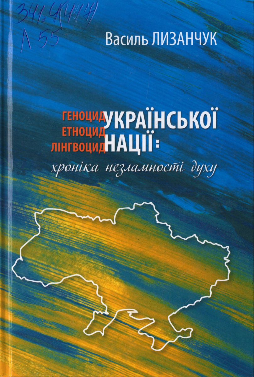 Лизанчук, Василь Васильович. Геноцид, етноцид, лінгвоцид української нації : хроніка незламності духу : навч.-метод. посіб. / В. В. Лизанчук ; пер. англ. Р. Дудко ; М-во освіти і науки України, Львів. нац. ун-т ім. І. Франка. – 2-ге вид., допов. і випр. – Львів : ЛНУ ім. І. Франка, 2024. – 376 с.