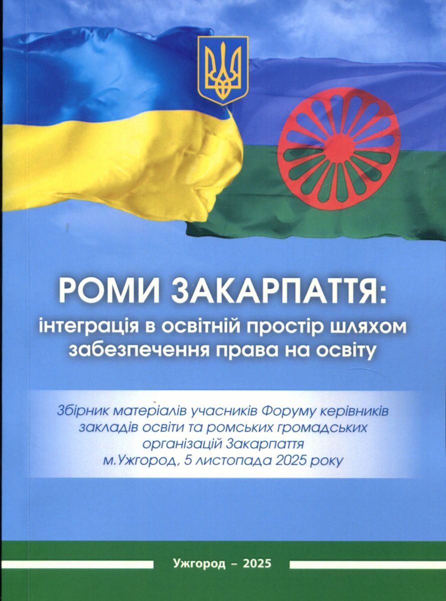 Роми Закарпаття: інтеграція в освітній простір шляхом забезпечення права на освіту : зб. матеріалів учасників Форуму керівників закл. освіти та ромських громад. орг. Закарпаття (м. Ужгород, 5 листоп. 2025 р.) / Упр. національностей та релігій Департаменту стратег. комунікацій, національностей та релігій облдержадмін. – обл. військ. адмін., Департамент освіти і науки, молоді та спорту облдержадмін. – обл. військ. адмін. [та ін.] ; під заг. ред. О. Лях ; відп. за вип.: Ю. Герцог, Е. Кулчар. – Ужгород : РІК-У, 2025. – 296 с. : кольор. іл., табл. – Бібліогр. наприкінці ст.