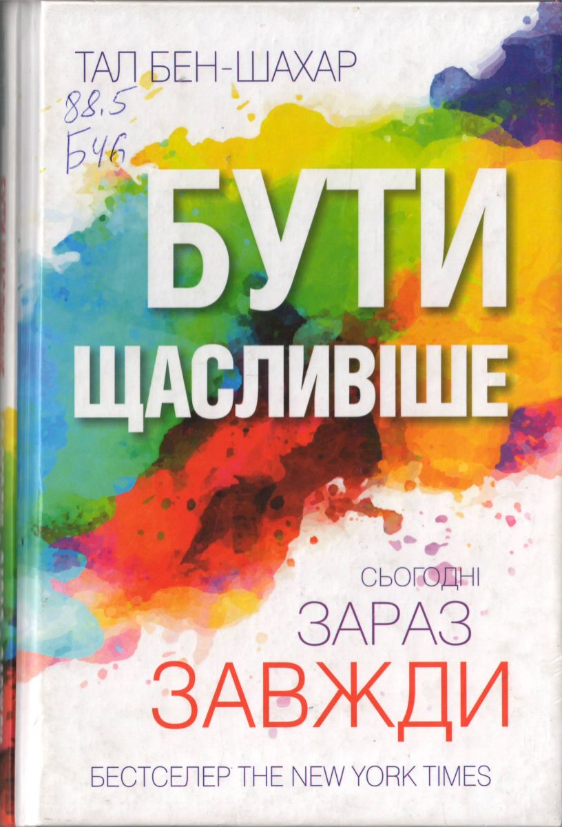 Бен-Шахар, Тал. Бути щасливіше. Сьогодні. Зараз. Завжди / Т. Бен-Шахар. – Х. : Клуб Сімейного Дозвілля, 2016. – 192 с. : іл. – (Бестселлер The New York Тimes).